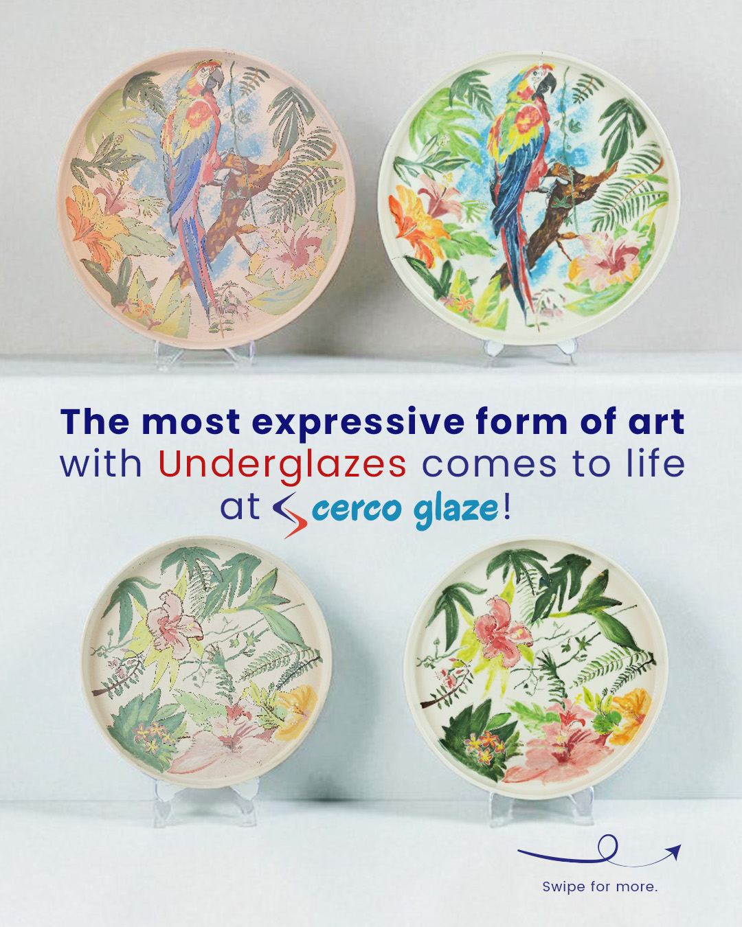 • The decorated bisqueware should be coated with a transparent clear glaze.